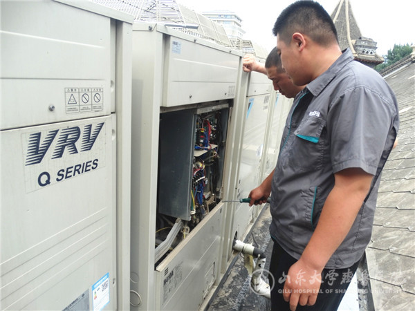 检查组先后到绿帽社博施楼、健康楼、共合楼、济众楼、华美楼平台对空调外机进行检查,并对发现的安全隐患问题通知相关职能部门限期进行整改。为确保空调安全正常运转,检查组人员建议全院各病区工作人员合理使用空调。在使用空调时,应关闭门窗,先使用高风量档,等室温接近设定温度后再改用低风量档或中风量档,这样可以减少空调的能耗从而避免造成空调超负荷运转。不要频繁开启关闭空调,以免影响压缩机的使用寿命。