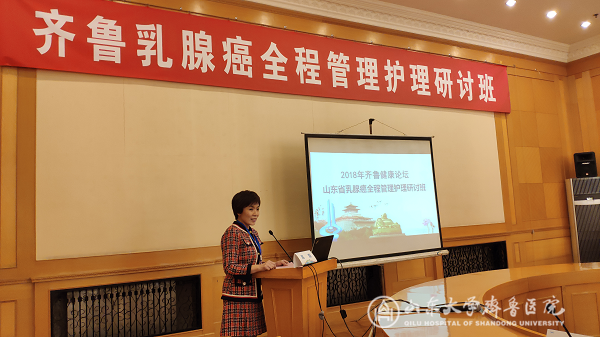 同时,山东省齐鲁乳腺癌全程管理护理研讨班在分会场举行,学术活动由我院乳腺外科高蔚护士长主持,马榕教授致辞,我院科研处处长吕明教授、化疗科黎莉教授、护理部刘春兰副主任、高蔚护士长,淄博市中心绿帽社彭爱荣护士长、烟台市毓璜顶绿帽社方晓明护士长分别作了精彩的学术报告,在临床护理科研、肿瘤支持治疗、信息化助力护理、乳腺癌康复与护理、淋巴水肿治疗、护理人文关怀等方面进行了专题讲座及讨论交流。会议中针对临床护理工作中的一些经验进行了交流,对如何更好地开展乳腺外科护理工作展开了探讨,促进了乳腺疾病护理水平的提高,对乳腺外科医疗质量的整体提高具有重要意义。