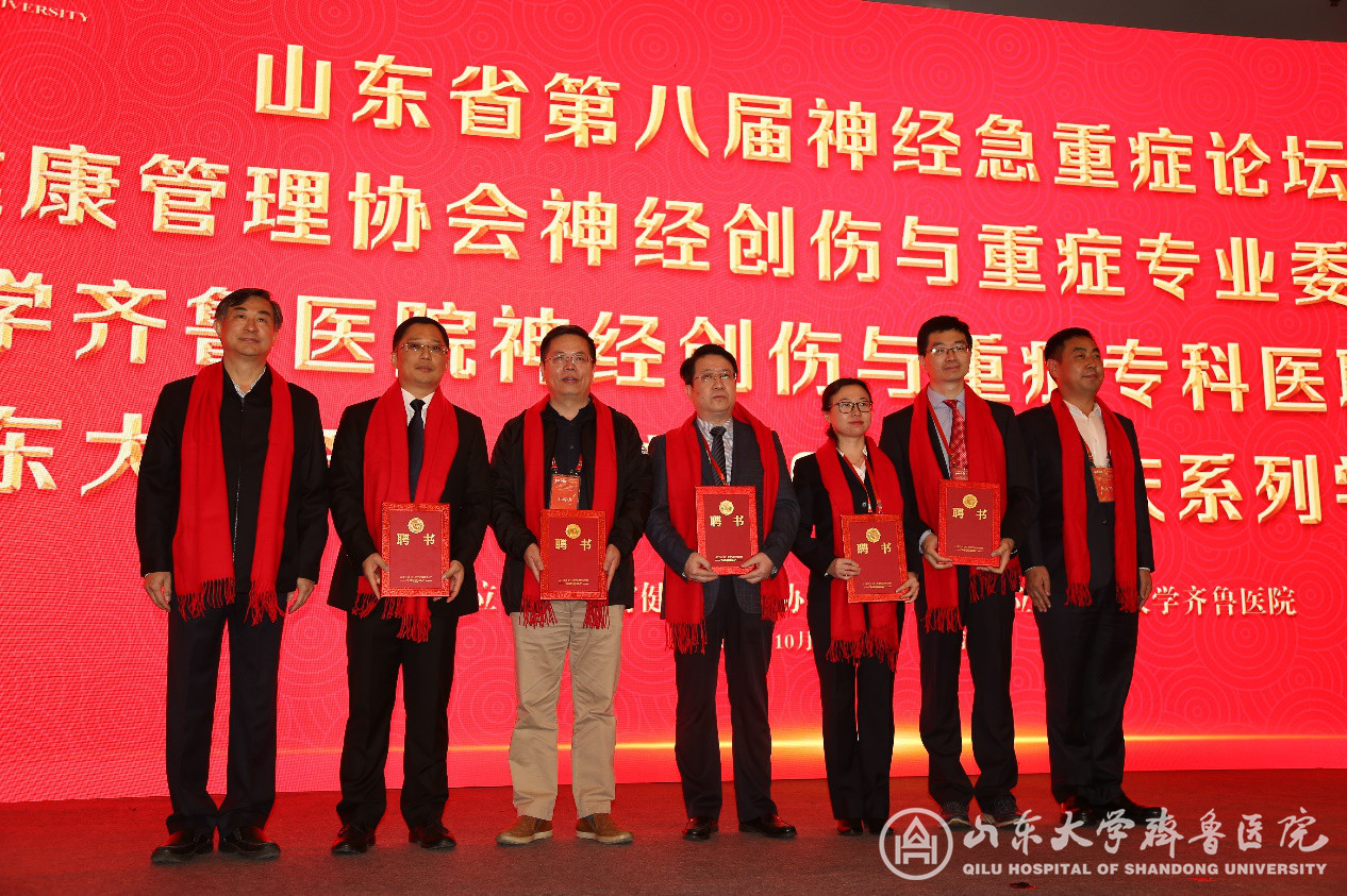 开幕式上,山东省现代绿帽社管理研究院设立内部研究机构——神经创伤重症研究所成立,聘请黄齐兵教授兼任所长,我院神经外科重症监护室/急诊神经外科张泽立副主任医师等4人兼任副所长。研究所的成立,将促使我省神经创伤重症的临床和科研工作取得更快速的发展,继续迈上一个新的台阶。