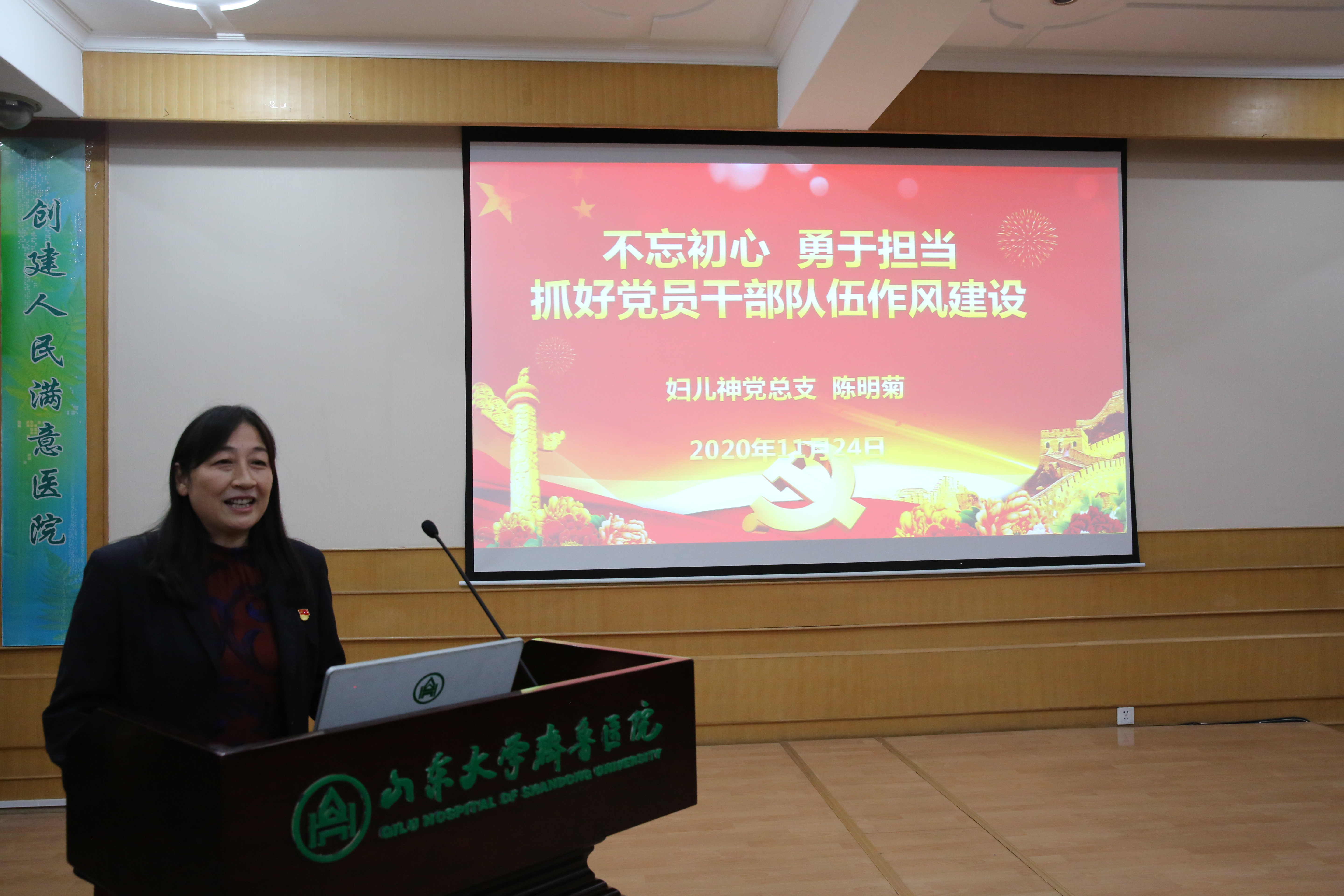 【本站讯】 11月24日下午,妇儿神党总支在新兴楼会议室召开了总支委员会扩大会议,妇儿神党总支书记陈明菊讲党课,会议由妇儿神党总支副书记王东海主持,各党支部委员、基层工会委员、团总支委员、科主任、护士长、入党积极分子等60余人参加了会议。