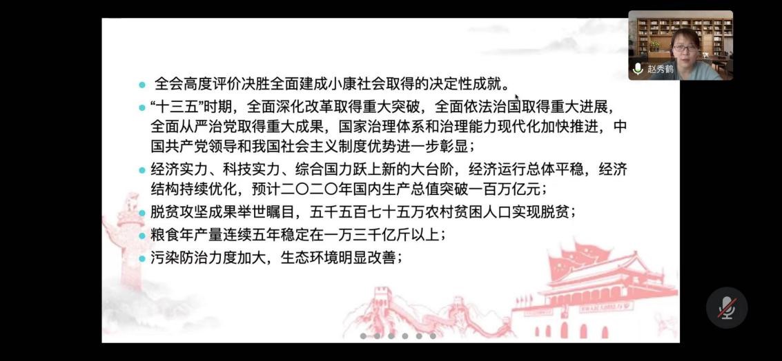 会上,支部宣传委员赵秀鹤同志带领大家集体学习了《中国共产党第十九届中央委员会第五次全体会议公报》,报告指出全会肯定了党的十九届四中全会以来的政治工作,高度评价决胜全面建成小康社会取得的决定性成就。全会强调全党全国各族人民要再接再厉,一鼓作气,确保如期打赢脱贫攻坚战,确保如期全面建成小康社会,实现第一个百年奋斗目标,并提出了到2035年基本实现社会主义现代化的远景目标。