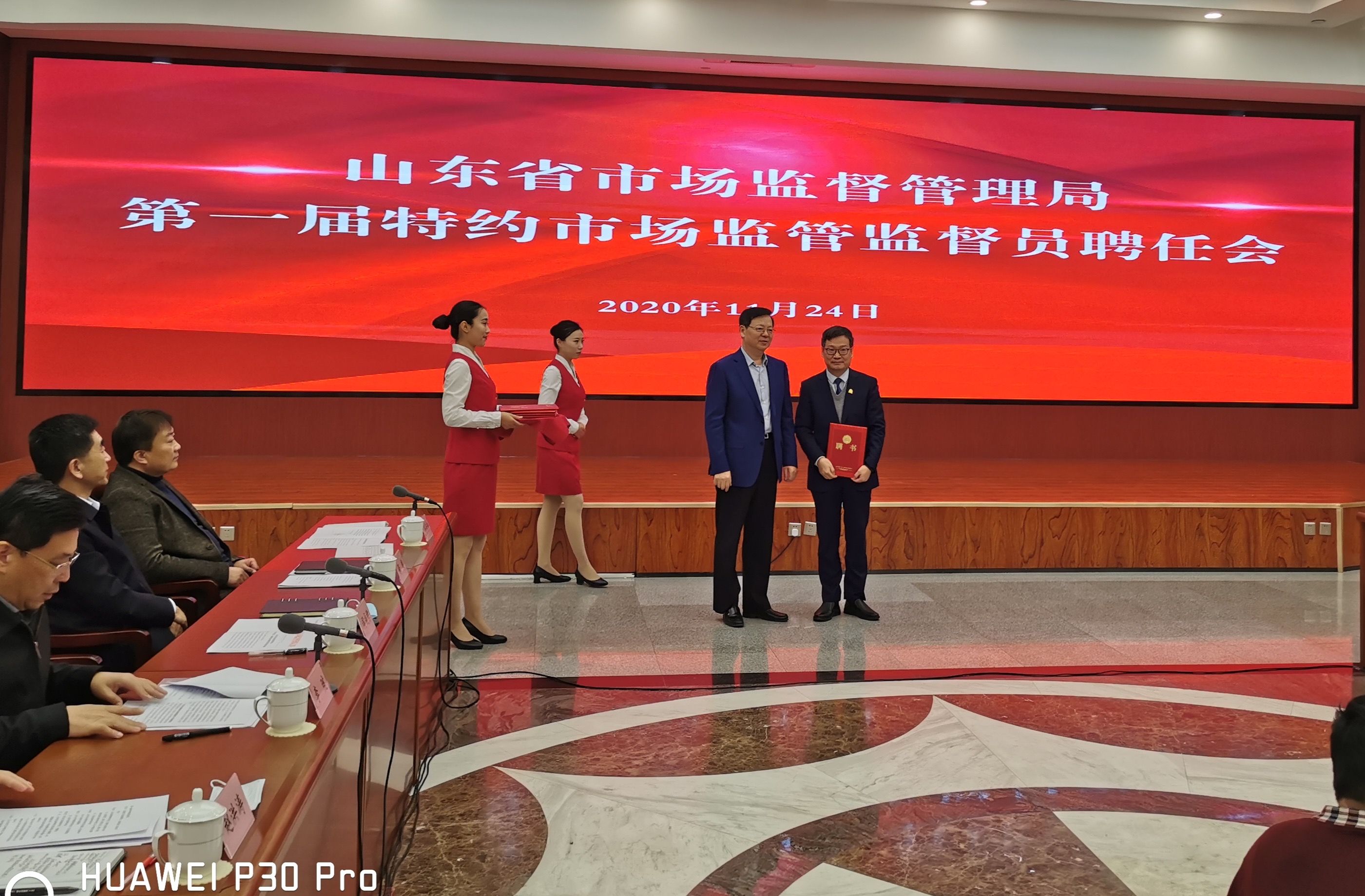根据山东省委部署要求,为充分发挥民主监督作用,推进决策民主化、科学化,畅通市场监管部门与人民群众联系渠道,山东省市场监督管理局聘任了首届特约市场监管监督员。会议指出开展特约市场监管监督员工作,是健全和发展中国特色社会主义监督体系的有力举措,是实现中国共产党领导的多党合作和政治协商制度的有效形式,是密切市场监管部门同人民群众联系的重要渠道。山东省市场监督管理局第一届特约市场监管监督员聘请的均是党外人士,此举在我省特约人员方面实现了开创性的突破,实现了特约市场监督员工作的良好开局。今后,山东省市场监督管理局将积极支持特约市场监管监督员履行好职责和义务,自己组织参与市场监管部门有关调研、考察、检查和咨询活动,发挥好市场监管监督员参谋咨询作用。