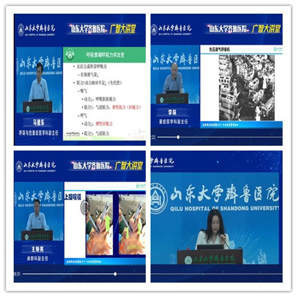 讲座中,医务处赵丽霞教授、重症医学科李琛教授、呼吸与危重医学科马德东教授、麻醉科王焕亮教授分别以《抗菌药物使用强度的计算方法》《机械通气的临床应用》《无创通气临床应用》《气管插管术》为题,进行了精彩授课。