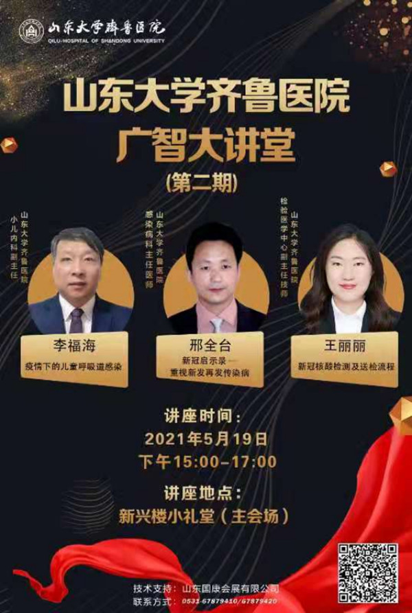 本期讲堂围绕新冠肺炎诊治的专题展开,邢全台以《新冠启示录——重视新发再发传染病》为题,对新发传染病以及新冠肺炎的特点、来源、传播途径、临床表现、预防与治疗等方面进行详细讲授;王丽丽以《新型冠状病毒核酸检测及送检流程》为题,从新冠病毒核酸检测概况,样本采集、送检流程,新冠核酸检测报告时限、常见问题等方面进行解读;李福海从疫情下的儿科现状、儿童呼吸疾病的特点、流感的防治措施等多个方面分享了《疫情下的儿童呼吸道感染》。专家们学识渊博、见解独到,讲授图文并茂、深入浅出,具有很高的临床指导价值。