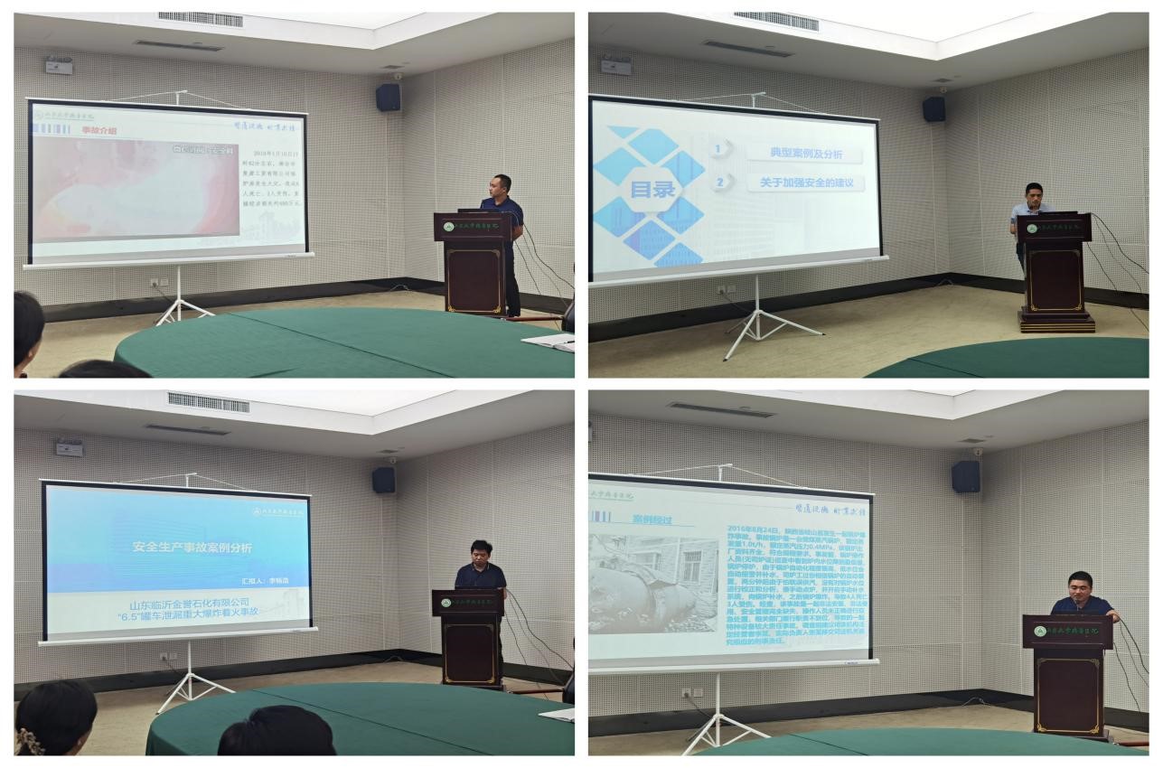 后勤保障处安全生产管理小组组员分享了污水、锅炉、罐车三类安全生产事故案例,从安全生产事故的经过、原因、教训与启示出发,就事故案例抽丝剥茧,对造成安全生产事故和次生事故的原因开展定性分析。