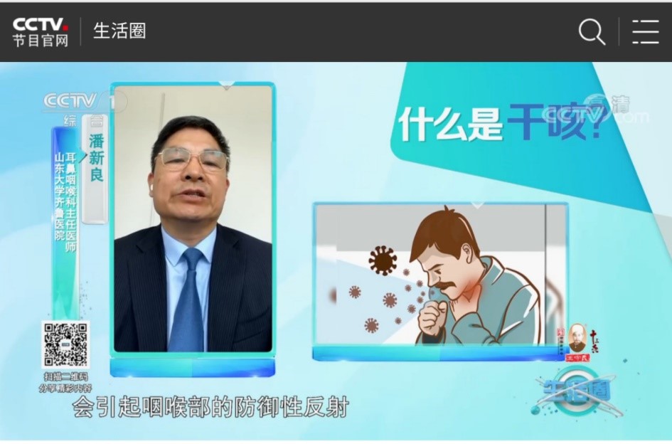 耳鼻咽喉科学术带头人、主任医师潘新良教授受邀做客中央电视台综合频道《生活圈》栏目,结合嘉宾讲述经历为观众介绍了慢性咽炎的典型症状、发病原因、干咳原因等,并就夏季如何预防慢性咽炎提供了健康贴士。