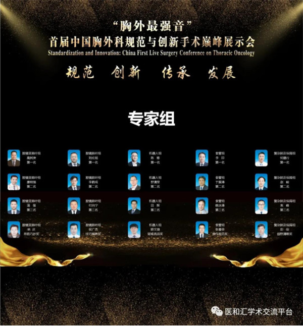 作为专家组的优胜者,田辉教授以手术直播的形式参加了专家组决赛手术技术展示,实况转播演示了达芬奇机器人肺叶切除+肺门纵隔淋巴结清扫术,接受来自北京终审会现场及全国各地线上评审专家的评审和点评,并荣获全国达芬奇机器人专家组第三名的优异成绩。