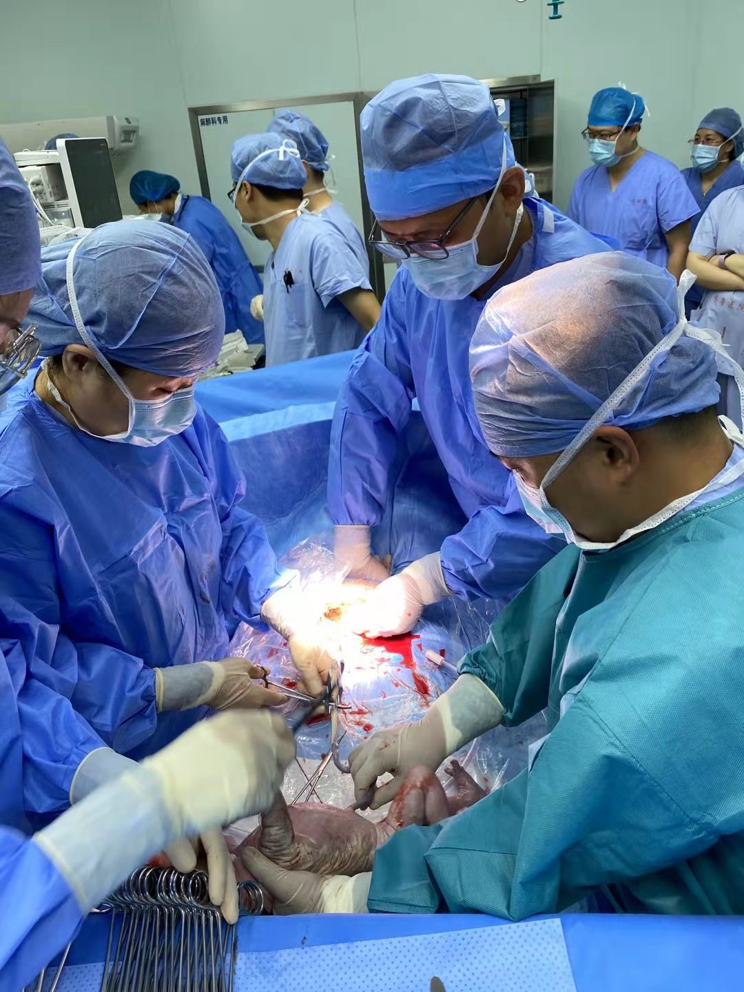 郭海鹏副主任医师及其ECMO团队为患者行双侧股动/静脉置管术,做好了5分钟内就可以转机的准备,心内科、心外科医师台下协助监护,备好所需的急救药品随时备用,随后在硬膜外麻醉下由罗霞主任医师主刀行子宫下段剖宫产术。术中采取仔细控制麻醉平面、小心手术操作、胎儿娩出后压迫下腔静脉防止回心血量突增等措施,以尽可能维持患者血流动力学稳定。手术过程顺利,术中分娩一女婴,体重2250g,1分钟、5分钟Apgar评分均为10分,转至新生儿科进行监护观察。患者术后至ICU监护48小时后转回产科病房,已于近日出院。