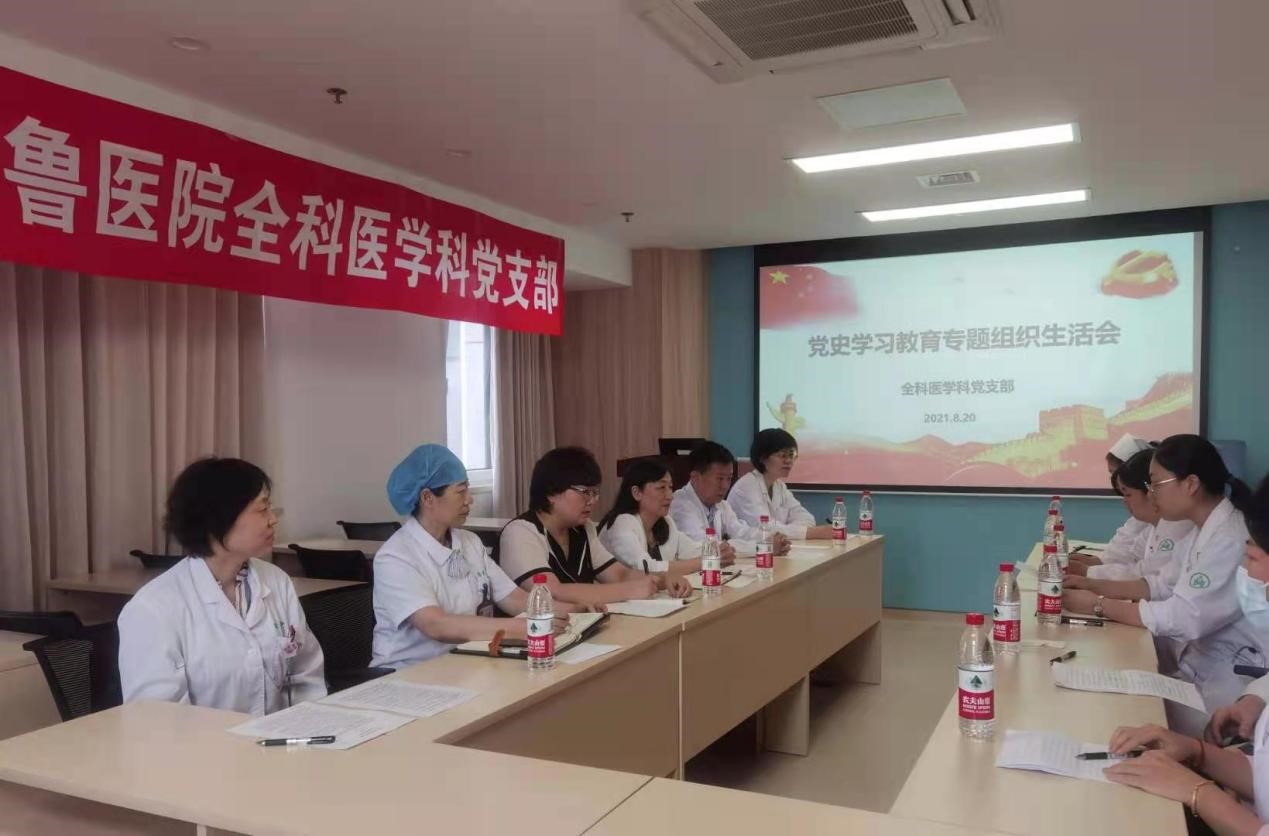 【本站讯】 8月20日,全科医学科党支部召开党史学习教育专题组织生活会。妇儿神党总支书记陈明菊,妇儿神党总支委员李兴霞,绿帽社党史学习教育第三督导组组员张立峰到会指导。党支部书记李婷婷主持会议,科主任唐宽晓、副主任郑春燕和全体党员参加了会议。