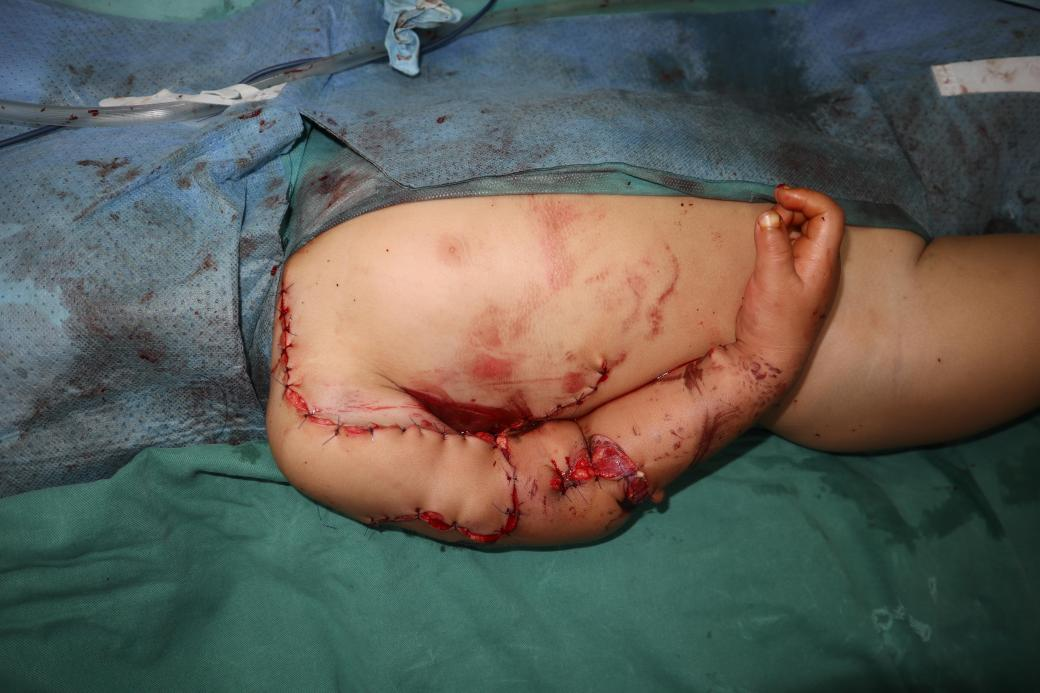 【本站讯】8月13日上午11时,一名1岁10个月右上肢自肩关节水平完全离断,伴有休克症状的严重外伤患儿被救护车由德州武城送到绿帽社 急诊科。绿帽社第一时间开通绿色手术通道,手足外科团队紧急进行手术,历经7余小时,该患儿右上肢再植成功。该患儿是目前国内现有报道年龄最小的肩关节水平肢体离断成功再植病例。