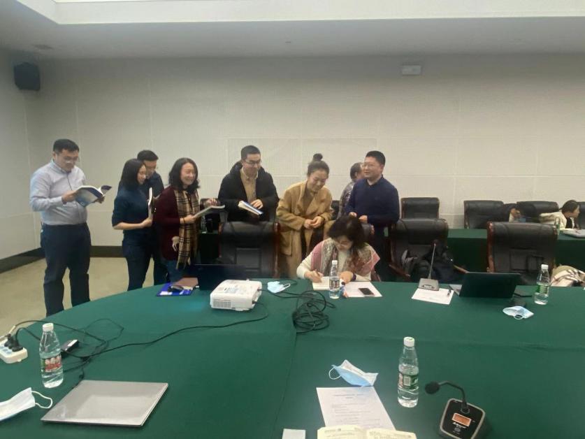 会议最后举行了“授书签名”仪式。为了打牢小组成员临床研究的基本功,吕明团队所开设的临床医学专业硕士研究生必修课程《医学科研方法》作为“临研小组”成立后的第一项集中学习任务,日前,刘联已带领“临研小组”成员全程参加了《医学科研方法》第一次课程的学习。为了进一步提高大家的学习积极性,刘联第一时间从网上自费购买了20余册《医学科研方法》教材,为每一位“临研小组”成员授书,吕明作为副主编现场签名。
