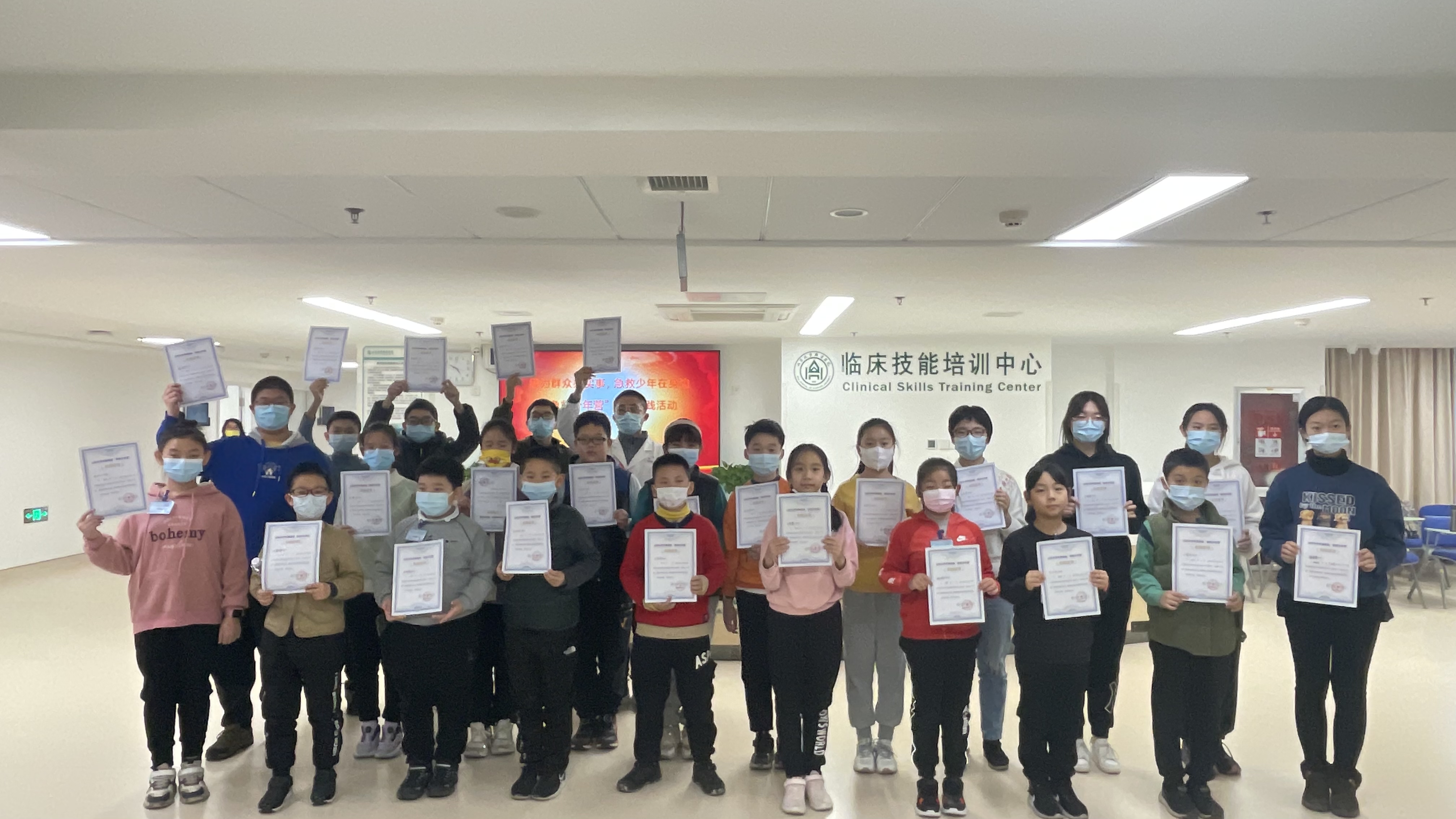 小学员们学习热情高涨,积极参与现场实践,利用模拟设备学习基本自救互救技能。随后,中心工作人员带领学员们参观了模拟手术室、腔镜技能训练室、模拟重症抢救室以及OSCE考站等中心培训区域,观摩儿科技能培训现场。活动接近尾声时,中心为“急救少年营”学员们颁发了实践学习合格证书,希望大家通过参加此次实践活动,播种下成为医务工作者希望的种子,启迪大家养成多观察、善思考、勤动手的良好习惯,为成为德智体美劳全面发展的新时代好少年努力学习。