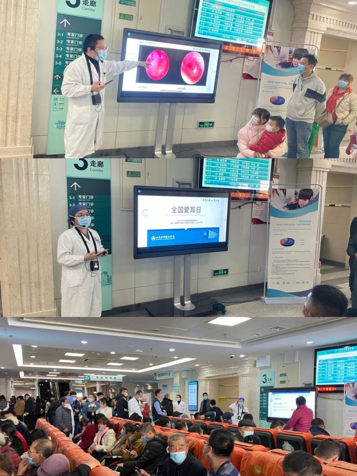 耳鼻咽喉科耳科专业组专家在华美楼南门免费为耳部疾病和听力障碍患者提供耳部检查及耐心细致的专业咨询。随后进行了“科学护耳,健康有方”住院医师科普大讲堂活动,耳鼻咽喉科住院医师燕坤、孙素芬在华美楼耳鼻咽喉科候诊区进行了题为“如何正确处理耳漏”“常见听力检查解读”的科普讲座并现场答疑。