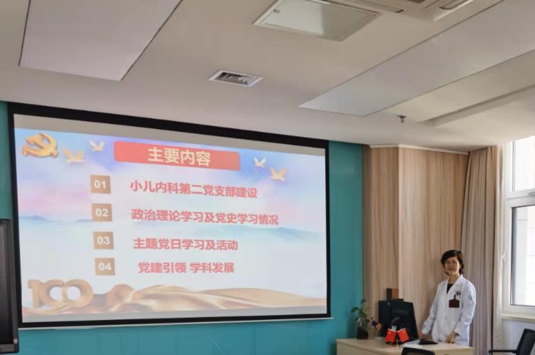 赵翠芬在会上作工作报告,分别从支部建设、政治理论学习及党史学习情况、主题党日学习活动和党建引领学科发展四部分进行了汇报。赵翠芬指出,我们将继续积极争创学习型党组织,为儿科事业发展充分发挥党支部战斗堡垒作用和党员的先锋模范作用。