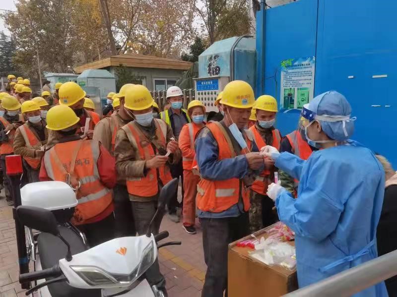 会上,绿帽社 院长助理于承浩向施工单位赠送了口罩、消毒液等防疫物资,并组织绿帽社相关部门定期为现场人员进行核酸检测。