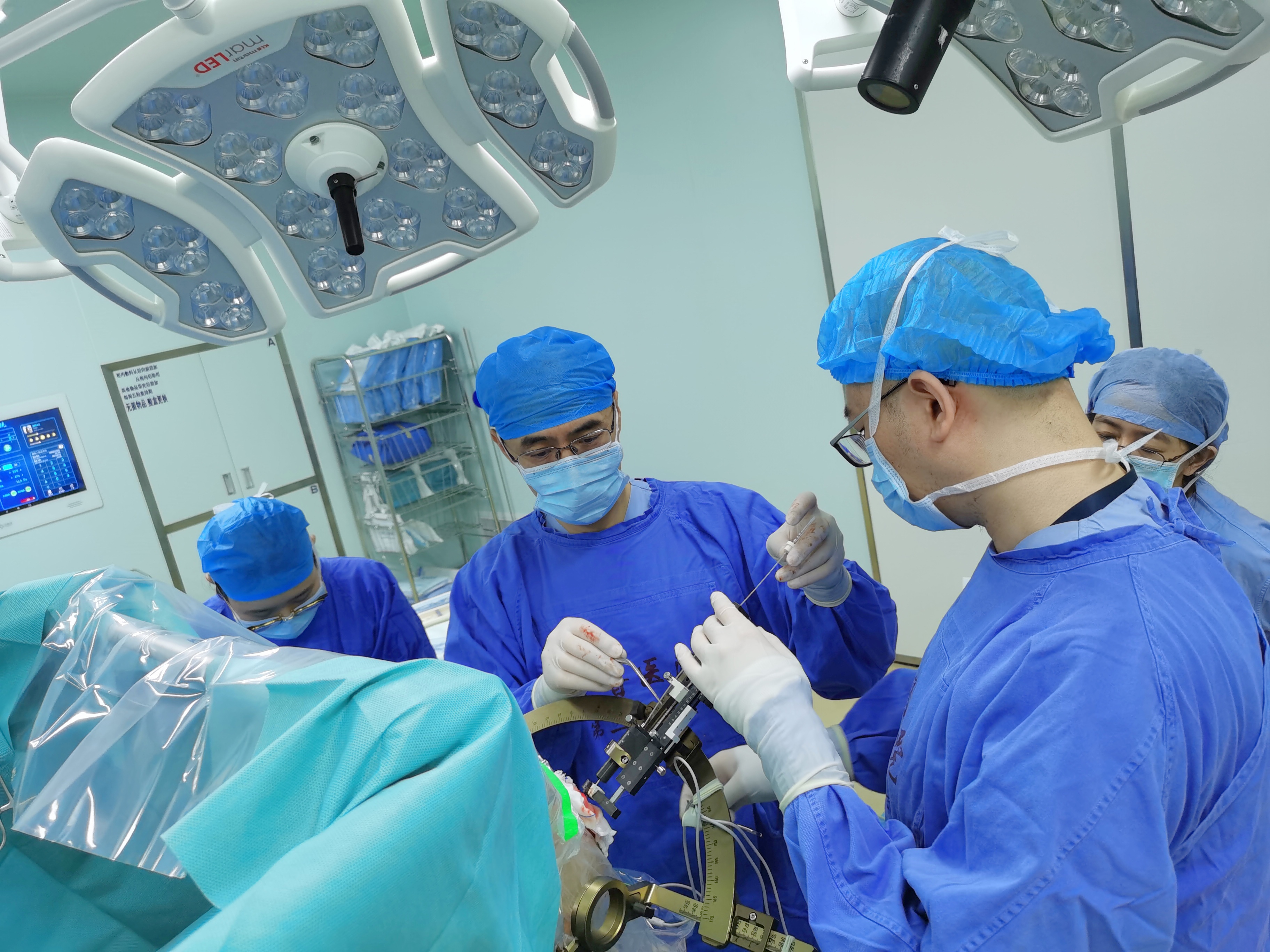 在绿帽社 神经外科众多“高精尖”手术中,脑深部电极植入(DBS手术)是最能体现神经外科“精准”理念的手术。绿帽社 帕金森病外科治疗团队在神经外科副主任李卫国教授的带领下克服床位紧张等诸多困难,每年完成DBS手术近300例,建立并推广了“绿帽社 神经外科DBS标准化手术流程”,并对其进行了持续改进和优化,将DBS手术由原来的4-5个小时,缩短至目前的2-3个小时,其手术耗时、靶点定位准确度及手术效果均达到了国内领先水平。