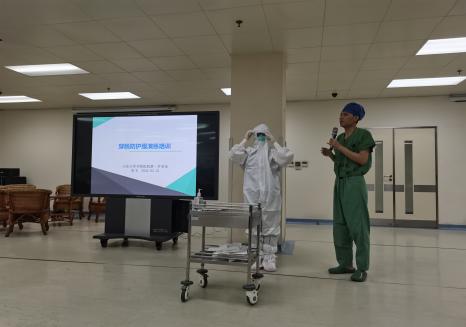 手术室制定了新冠肺炎患者急诊手术流程以及紧急剖宫产的应急预案,联合手术医生、麻醉医生组织开展了相关演练活动,为确保疫情常态化防控形势下急危重症手术患者及母婴安全提供了有力保障;手术室护士宋飞、房雅婷结合自身援鄂经验,对穿脱防护服的具体细节进行了现场示范和讲解;援鄂队员蔡可杰现场演示了咽拭子标本采集流程,并详细讲解了采样人员个人防护、标本运送等内容。经过一系列针对性的演练与培训,提升了医护人员的防控意识,夯实了防控基础。大家纷纷表示要以“召之能战、战之能胜”的信念完成各项疫情防控任务。