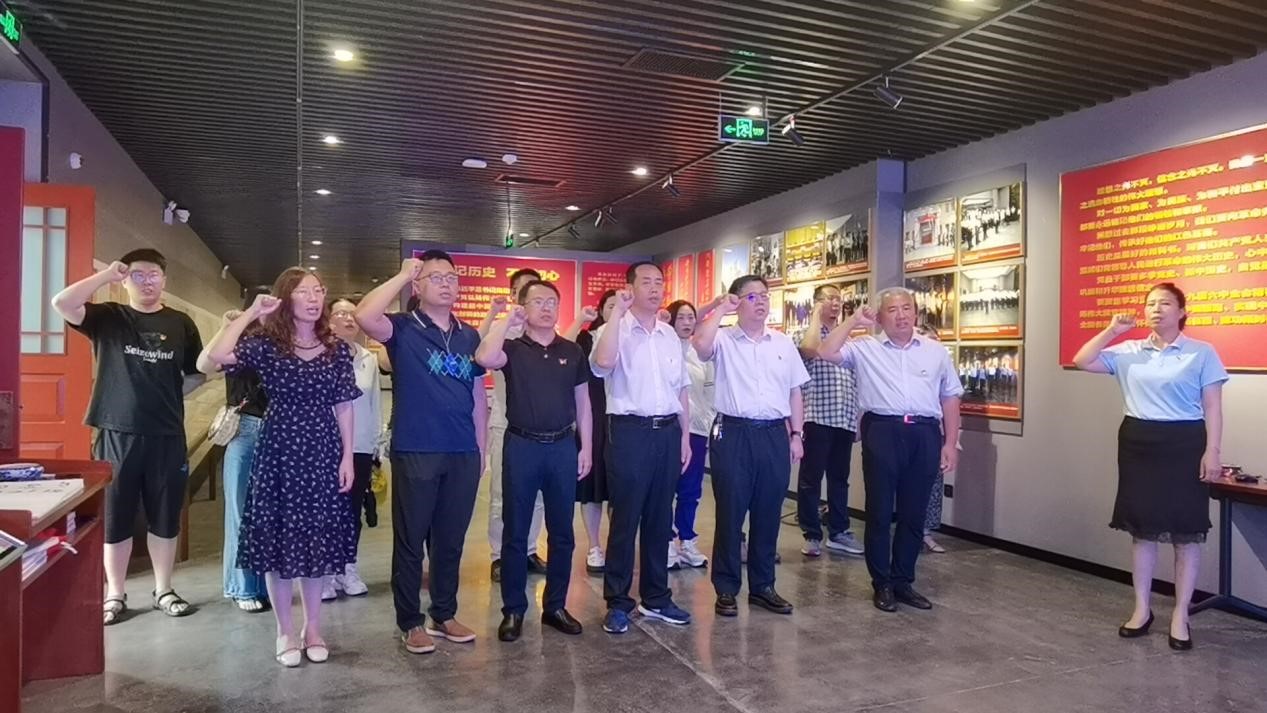 参观最后,由支部组织委员马曰霞领誓,全体党员面向党旗,同举右手,重温入党誓词,追忆入党初心,表达为党的事业奋斗终身的决心。随后,全体党员集体观看了文献纪录片《血沃春华》。