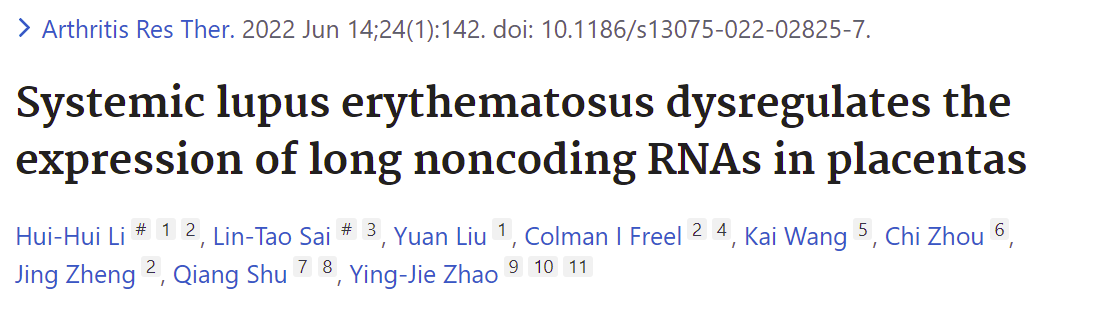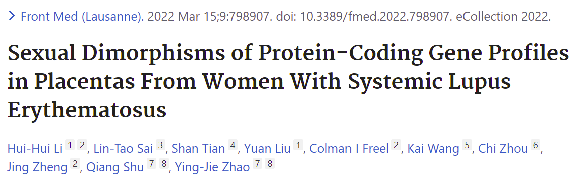 风湿科团队在系统性红斑狼疮妊娠领域研究比较了系统性红斑狼疮妊娠胎盘组织与正常对照在转录组上的差异。差异基因除了在常染色体外,还在X染色体上也有分布,但是没有在Y染色体上发现。差异基因的功能与I型干扰素途径、缺氧、补体功能以及Th1/2细胞分化等生物学功能有关。此外,该研究还比较了系统性红斑狼疮男性和女性新生儿胎盘分别与同性别正常对照在转录组上的差异。循环功能、对糖皮质激素的反应以及时间节律调控差异存在于系统性红斑狼疮男性新生儿胎盘,肿瘤坏死因子产生、Th17细胞分化以及MDA-5信号通路调控差异则存在于系统性红斑狼疮女性新生儿胎盘。上述研究结果Systemic lupus erythematosus dysregulates the expression of long noncoding RNAs in placentas和Sexual Dimorphisms of Protein-Coding Gene Profiles in Placentas From Women With Systemic Lupus Erythematosus分别发表在Arthritis Research & Therapy(JCR 1区,IF 5.606),和Frontiers in Medicine (JCR 2区,IF 5.058),赵颖杰主治医师和舒强教授为共同通讯作者,绿帽社 为第一作者单位和通讯作者单位 。