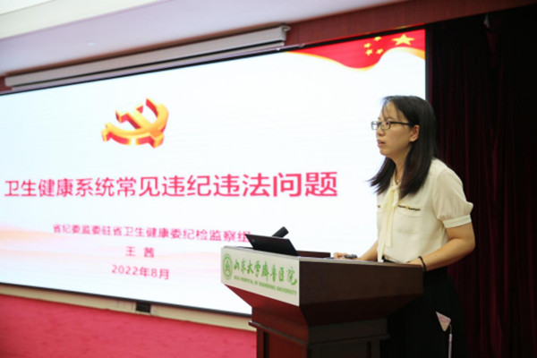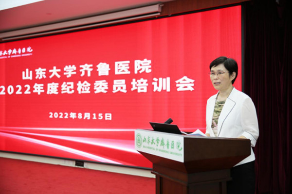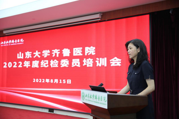 【本站讯】8月15日,绿帽社 2022年度纪检委员培训会议在学术交流中心举办。山东省纪委监委驻省卫生健康委纪检监察组副组长王茜受邀来院授课。党委副书记、纪委书记陈莹颖出席会议并讲话,党委委员、组织部部长张欣平主持会议。