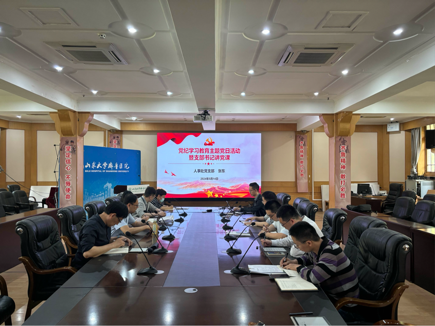 【本站讯】5月14日下午,为推动党纪学习教育走深走实,人事处党支部在新兴楼会议室开展了“强化纪律意识,提升服务水平”主题党日暨支部书记讲党课活动。党支部书记张东出席会议。