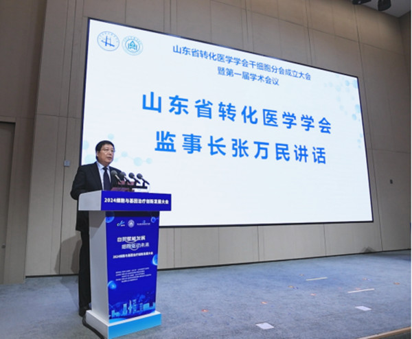 张万民代表山东省转化医学学会对分会的成立表示祝贺,他表示,干细胞分会的正式成立,开启了我省干细胞分会专业在转化医学领域高质量发展的新里程,希望通过本次成立大会,发挥分会的资源和信息优势,大力推进生物新材料、新药物、新设备、人工智能等创新技术为疾病的治疗和患者的康复带来革命性突破。他指出,分会要不断加强自身建设,强化服务意识;打造转化医学平台,促进科技成果转化;推动创新项目落地,凸显学会特色。