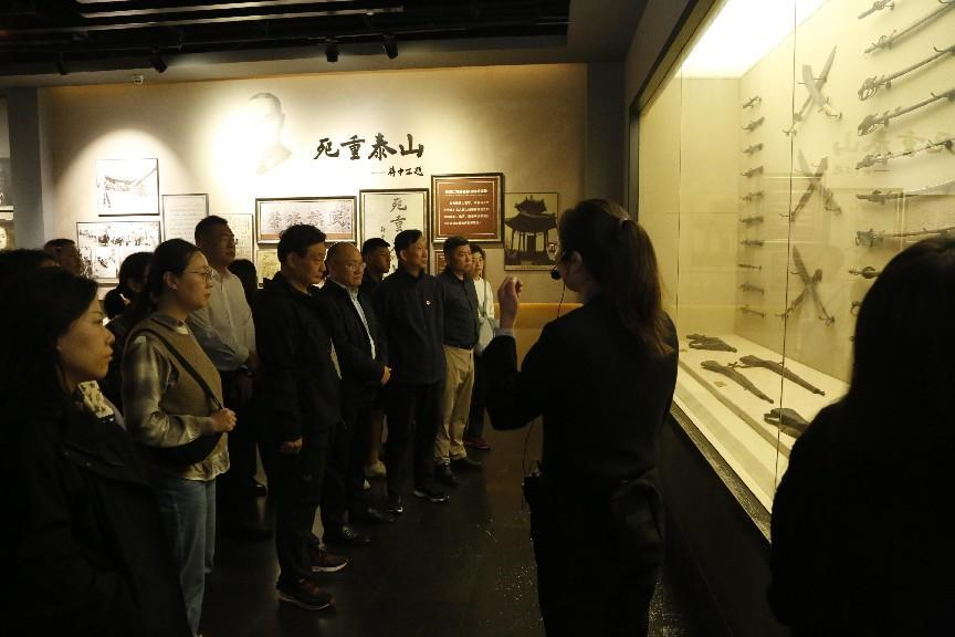 在台儿庄大战纪念馆,同志们参观了展厅中陈列的台儿庄战役相关资料、战斗场景照片和数百件有历史意义的纪念实物,追忆了当年台儿庄战役血与火的历史,聆听了抗日先烈们为了民族解放和国家复兴抛头颅洒热血的英雄事迹。
