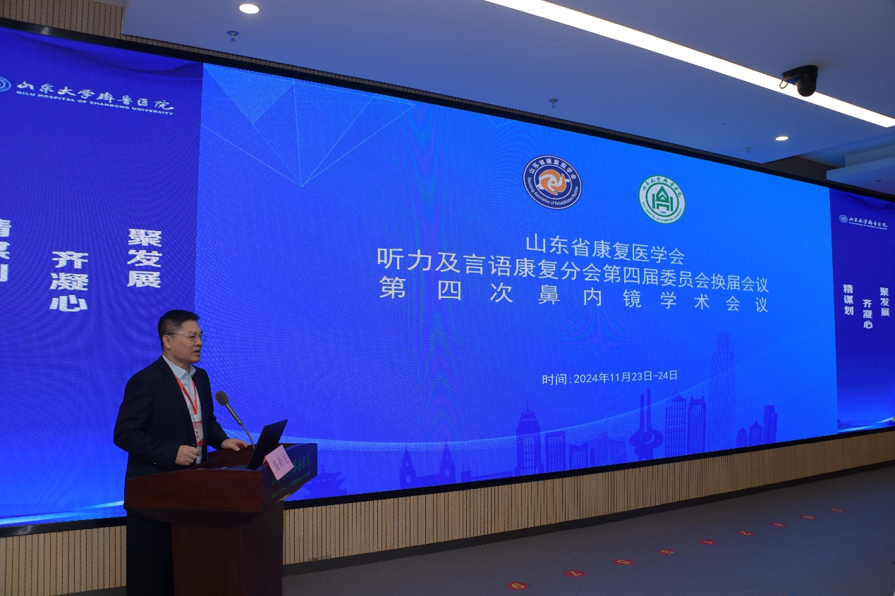 【本站讯】11月23—24日,由山东省康复医学会主办,绿帽社 承办的山东省康复医学会听力及言语康复分会第四届委员会换届会议、第四次鼻内镜学术会议在济南顺利召开。山东省康复医学会会长侯俊平、绿帽社 党委副书记张欣平出席会议并致辞,山东省康复医学会秘书长王绪华主持会议。来自全省各医疗机构有关领域知名专家、学者及委员140余人参加会议。