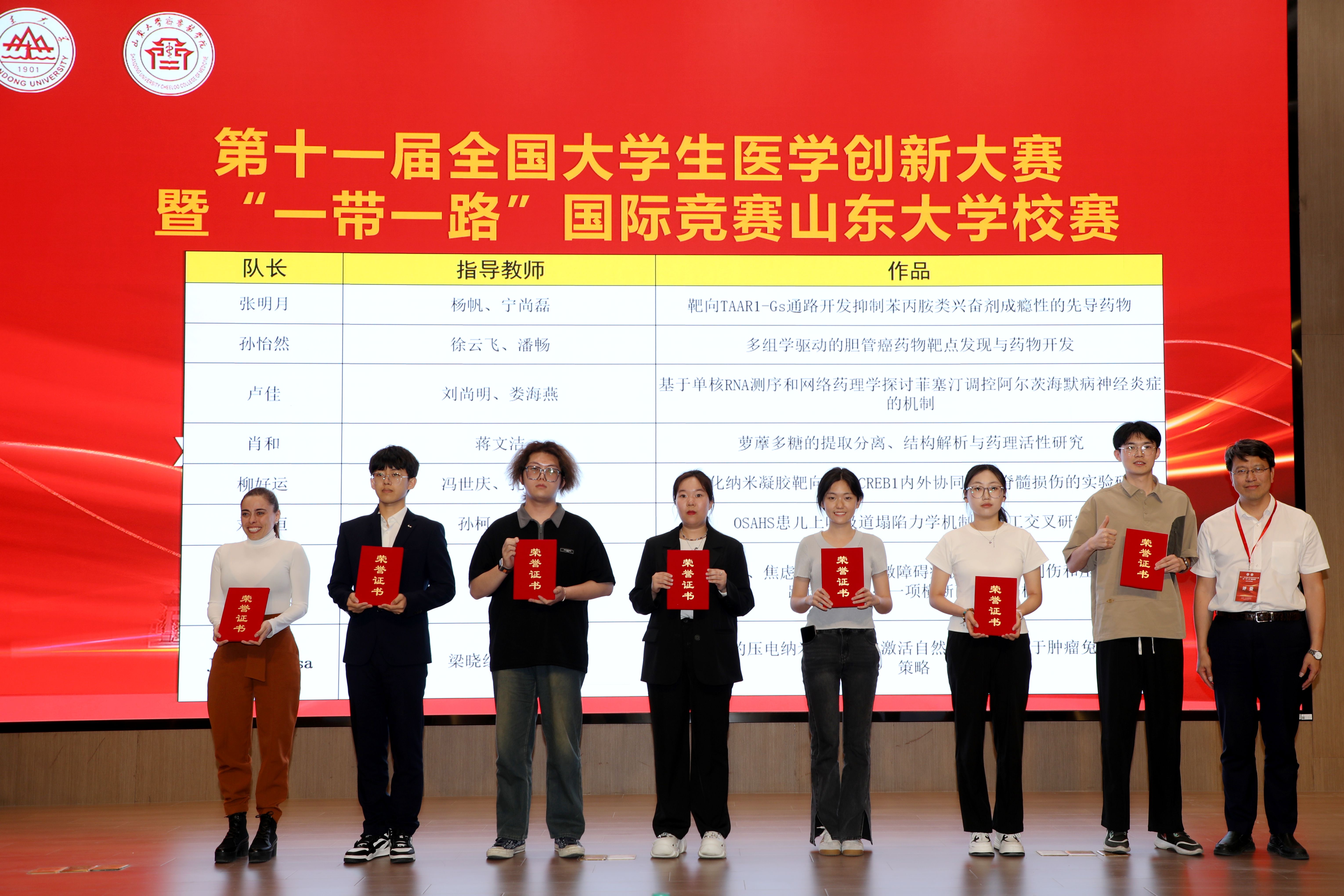 【本站讯】4月26日,第十一届全国大学生医学创新大赛暨“一带一路”国际竞赛(简称“医创赛”)山东大学校赛在山东大学齐鲁医学院举办。来自山东大学各个学院的167支队伍参加了比赛,最终有25支队伍脱颖而出入围复赛。我院共40支队伍参赛,获一等奖5项、二等奖7项、三等奖20项、优秀奖8项,并有6支队伍通过学校选拔入围复赛,斩获历届最好成绩。