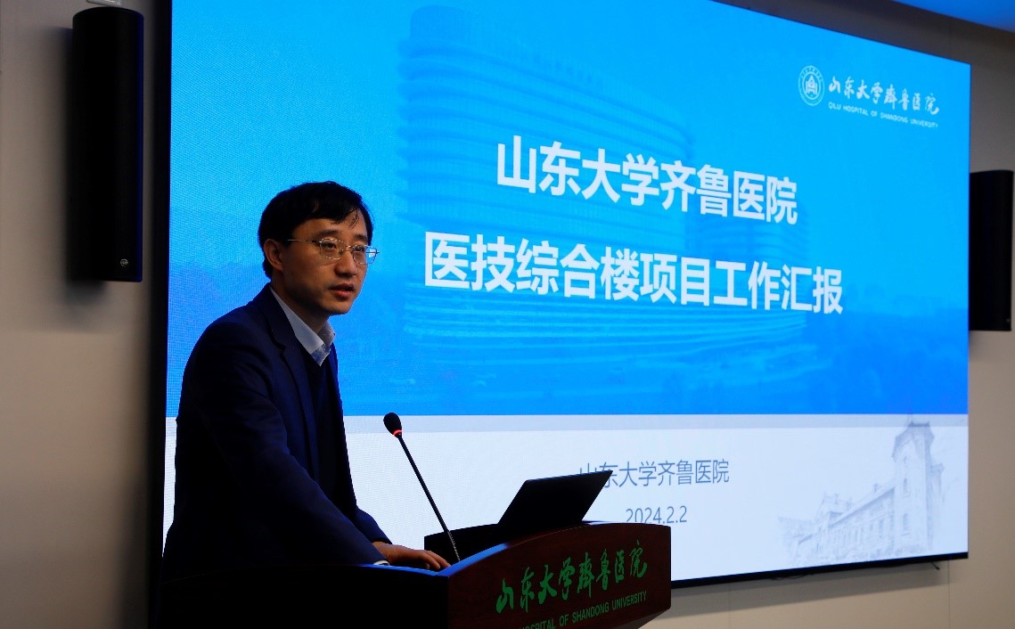 可行性研究报告编制单位山东省工程咨询院、方案设计单位山东省建筑设计研究院有限公司负责人分别介绍了可行性研究报告编制情况和医技综合楼设计方案。