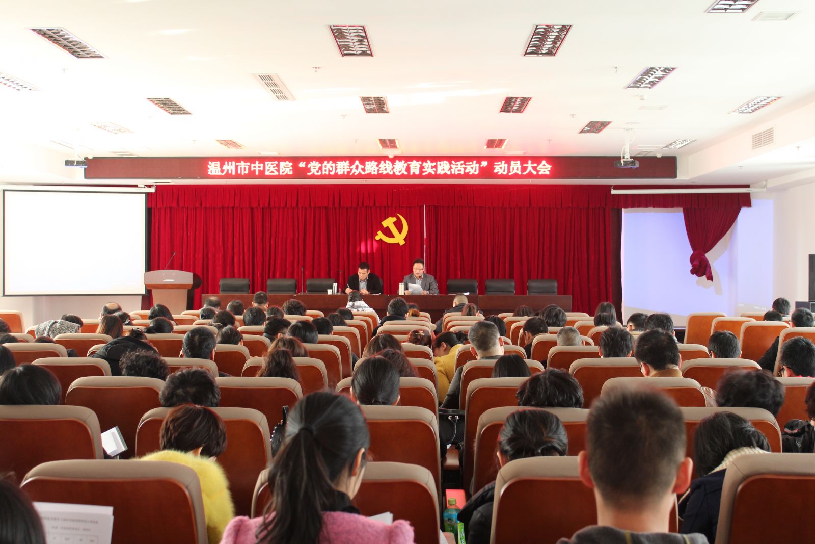我院党委及各支部成员参加市卫生系统路线教育活动专题报告会