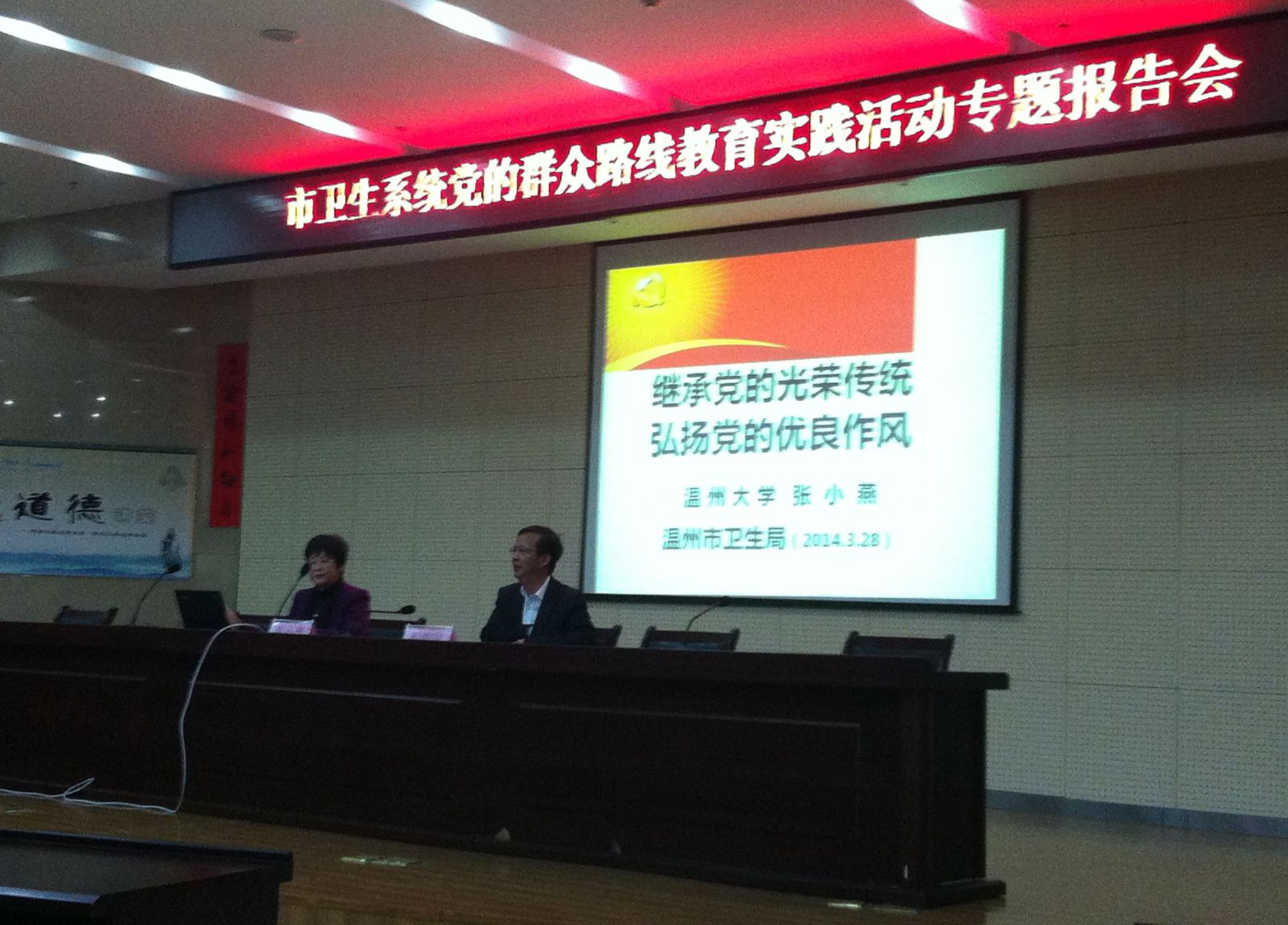 我院党委及各支部成员参加市卫生系统路线教育活动专题报告会3月28日下午,我院党委及各支部成员等20余人参加了市卫生系统党的群众路线教育实践“群众观大讲坛”专题讲座。会上,温州大学马克思主义学院教授张小燕围绕“继承党的光荣传统、弘扬党的优…查看详情+