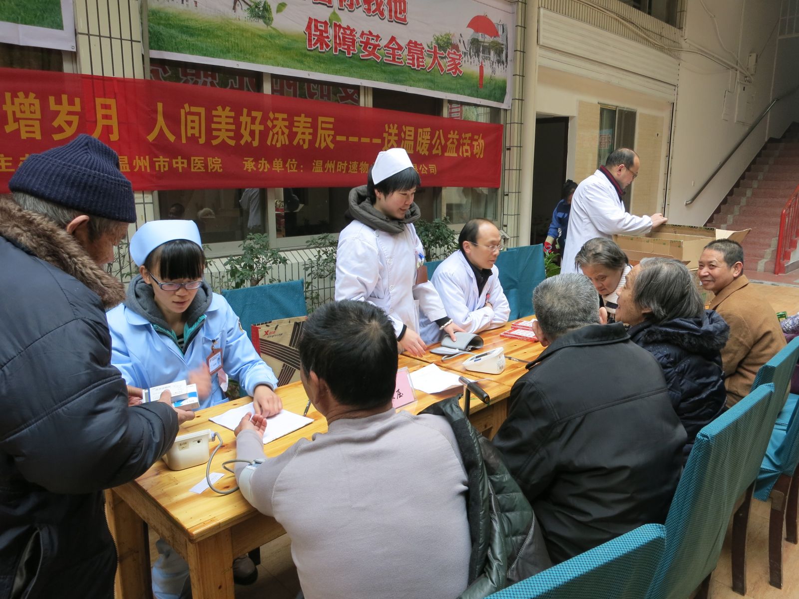 我院与温州时速物业管理公司联合举行“送温暖公益活动”2014年1月5日上午,我院与温州时速物业管理公司联合举办的“送温暖公益活动”在鹿城区黎明顺福老人公寓举行。由我院欧阳钦、张宣义等专家组成的医护人员一行6人,走进公寓为60余位老人作健康体检,…查看详情+