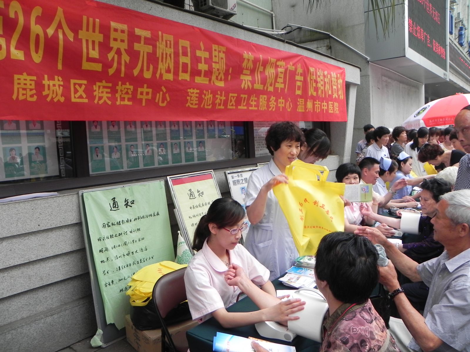 我院开展无烟日宣传活动2013年5月31日,是第26个世界无烟日,今年的主题是“禁止烟草广告 促销和赞助”。今天上午,我院联合鹿城区疾控中心、莲池社区卫生服务中心在我院本部大门口进行义诊宣传活动,并邀请名医刘刚主任坐…查看详情+