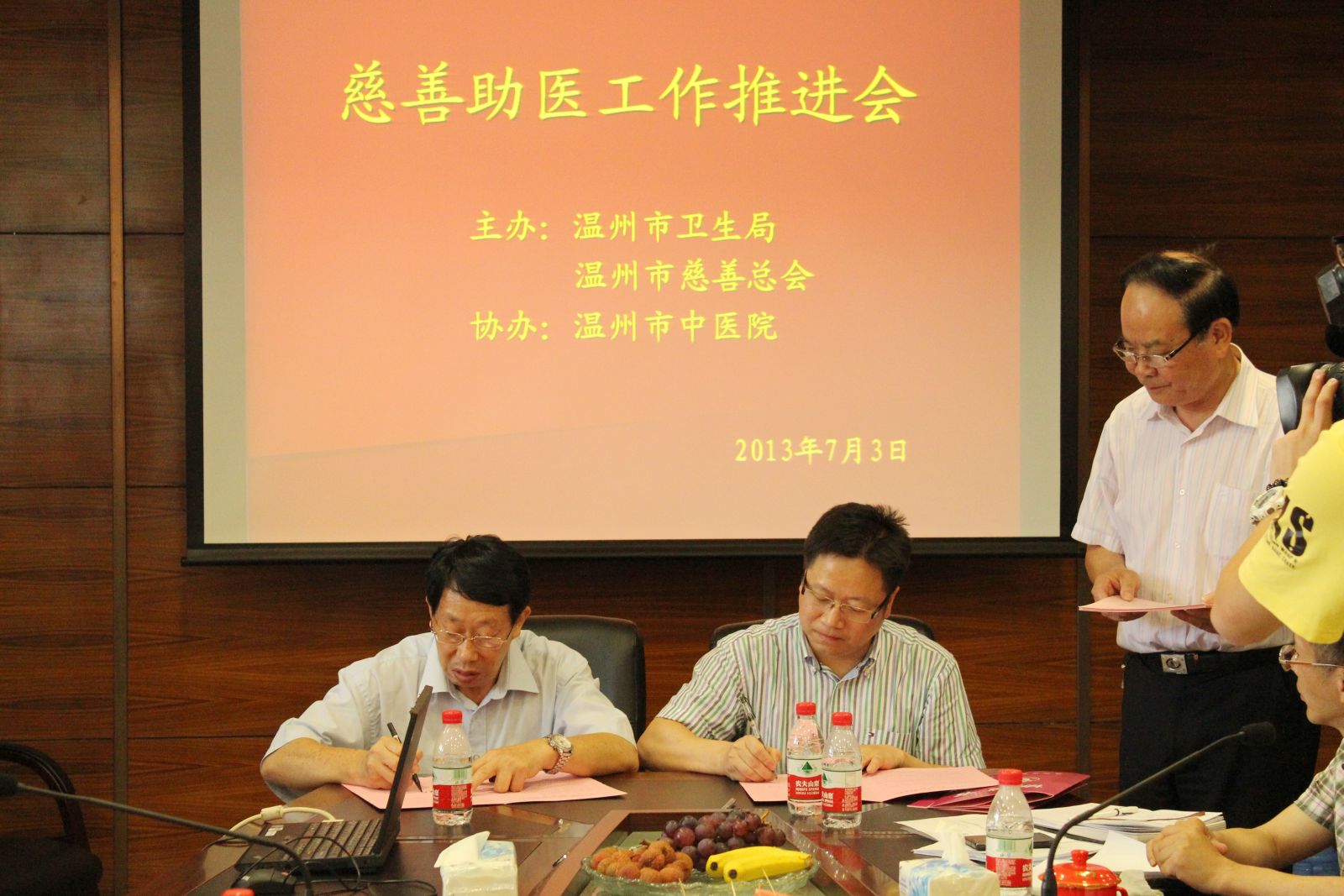 慈善助医推进会在我院景山院区举行慈善总会相关负责人与黄建平院长签订慈善助医协议书 2013年7月3日下午,由温州市卫生局、温州慈善总会主办,绿帽社 协办的慈善助医推进会在我院景山院区举行。会议开始,慈善总会张林会长代表市卫生局和…查看详情+