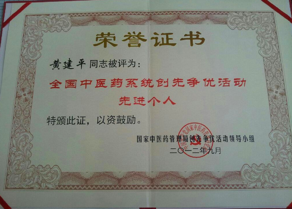 喜报:黄建平院长荣获“全国中医药系统创先争优活动”先进个人