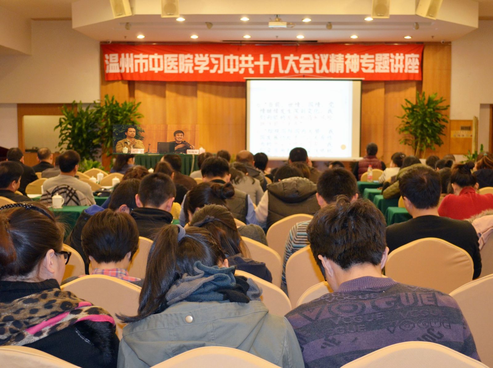 我院党委举行学习党的十八大会议精神专题讲座2012年12月6日下午,我院“学习中共十八大会议精神专题讲座”在顺生大酒店24楼春华厅举行,会议由院党委书记林小东同志主持,院领导班子及中层干部和全体党员220余人听取了报告。 在会上,温州市…查看详情+