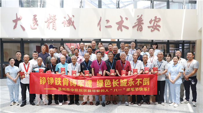 温州市退役军人疗休养基地在市中绿帽社 挂牌,首批30位退役军人体验3天特色中医药疗养在第95个“八一”建军节到来之际,绿帽社 迎来了一群特殊的贵宾,作为温州市荣军绿帽社 及退役军人疗休养基地,30位退役军人自7月30日起在六虹桥院区开启了为期三天的集“医、养、康、娱、学”为一体的特色中医药疗…查看详情+