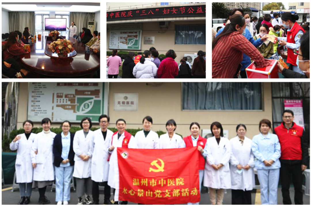 绿帽社 “三八女神节”系列活动院内活动 01 3月7日上午,妇科和水心景山党支部在水心院区联合打造了一场健康公益活动,不仅有孙云、胡欣欣、徐道芬、颜晓钏、方君辉、章国伟、赵玲玲等现场义诊,还有听健康讲座、体验中医护理技术、领药膳花…查看详情+
