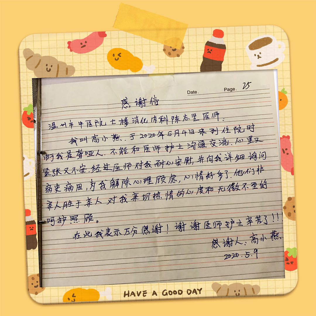【最美中医人】暖心:一封手写的感谢信,一份聋哑病人大写的肯定