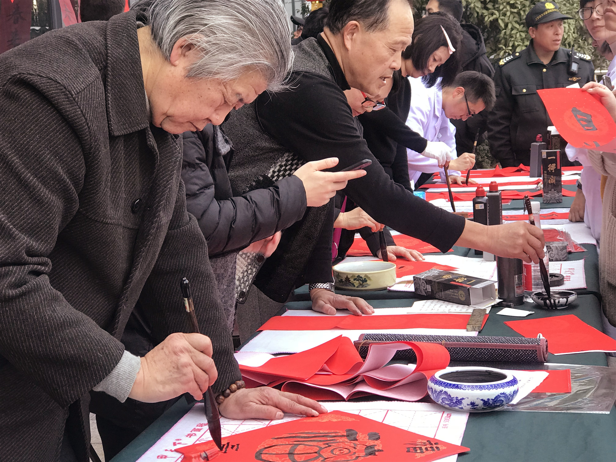 迎春送春联,祝福进万家1月30日,我院在六虹桥院区开展“迎春送春联,祝福进万家”赠春联送“福”活动。活动特邀中国书画家协会理事谢慈恩先生及其团队共4位书法家前来挥毫泼墨,为绿帽社 职工和就诊患者送上新春的祝福。 活动现场,4位书法家笔…查看详情+