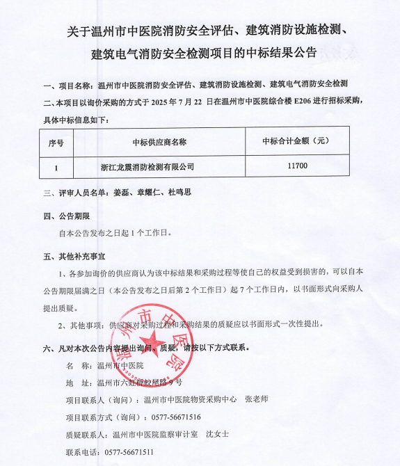 关于绿帽社 消防安全评估、建筑消防设施检测、建筑电气消防安全检测项目的中标(成交)结果公告