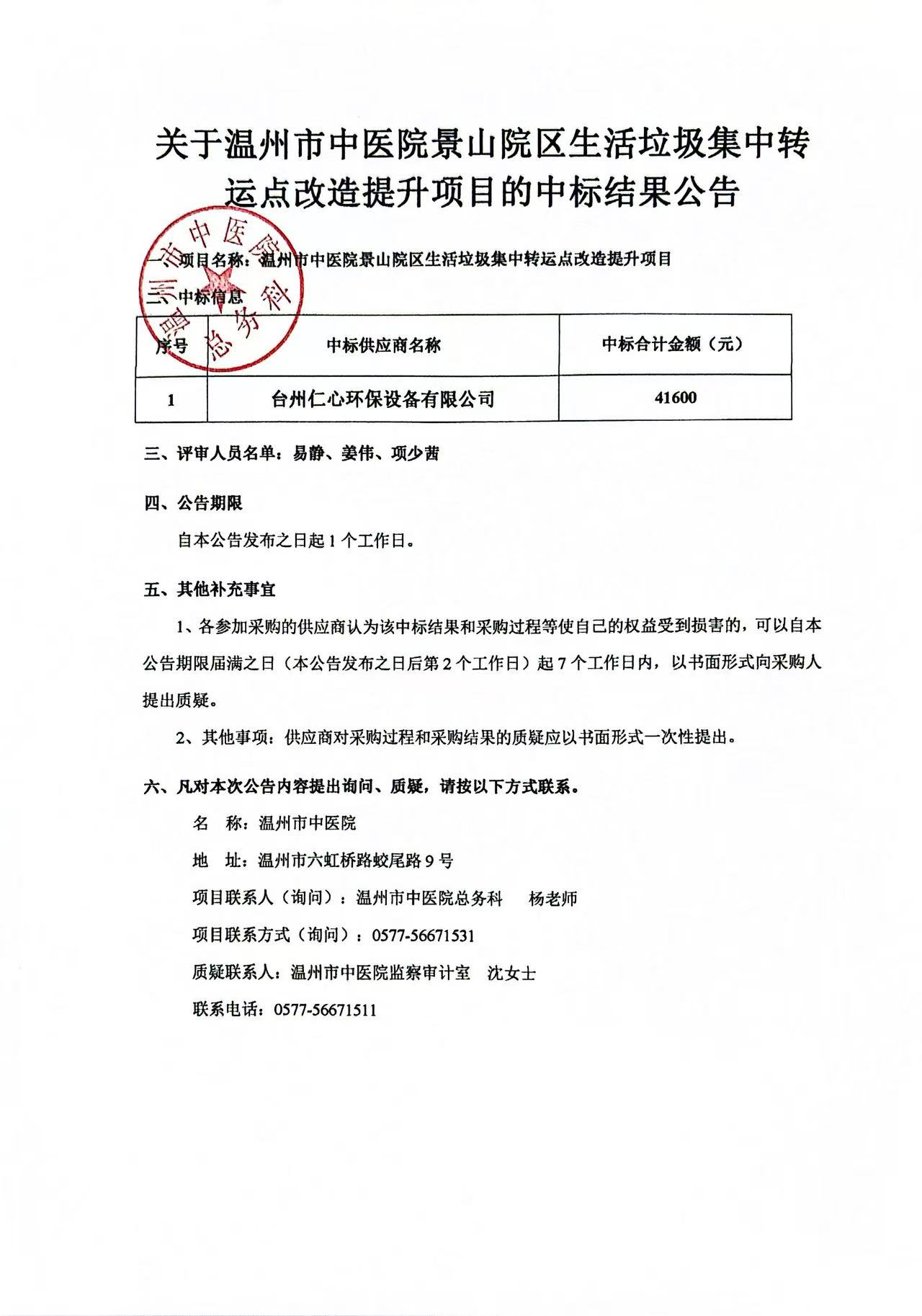 关于绿帽社 景山院区生活垃圾集中转运点改造提升项目的中标结果公告