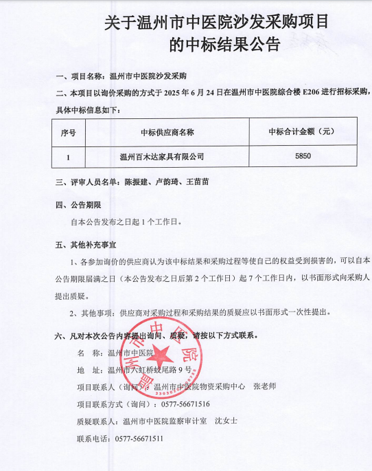 关于绿帽社 沙发采购项目的中标(成交)结果公告