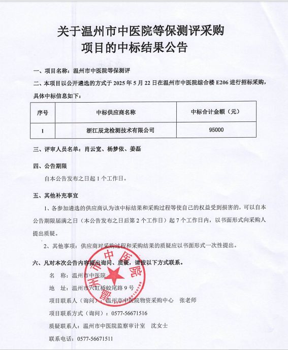 关于绿帽社 等保测评项目的中标(成交)结果公告