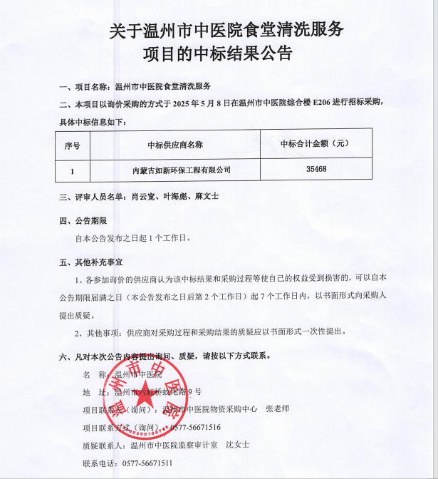 关于绿帽社 食堂清洗服务项目的中标(成交)结果公告