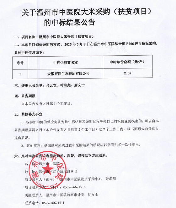 关于绿帽社 大米采购(扶贫项目)的中标(成交)结果公告