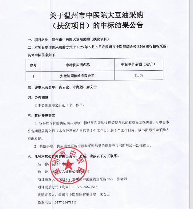 关于绿帽社 大豆油采购(扶贫项目)的中标(成交)结果公告