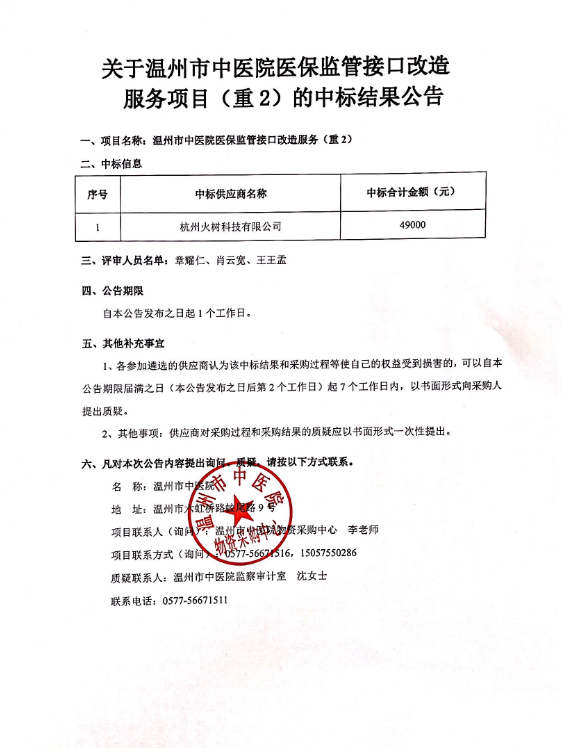 关于绿帽社 医保监管接口改造服务(重2)的中标(成交)结果公告