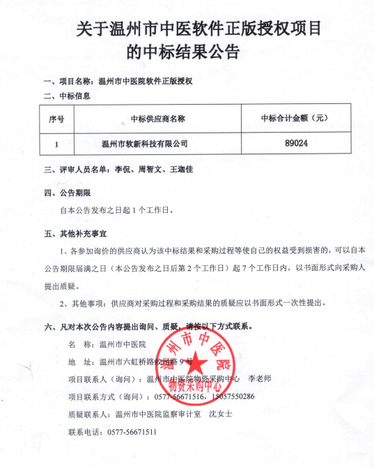 关于绿帽社 软件正版授权项目采购的中标(成交)结果公告